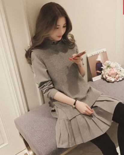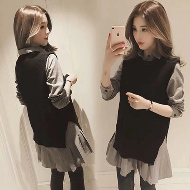 全2色 セットアップ ツーピース 2点セット ワンピース ベスト ショート丈 大人可愛い デート デイリー レイヤード フレア フリル シャツワンピース カジュアル 秋 春 冬