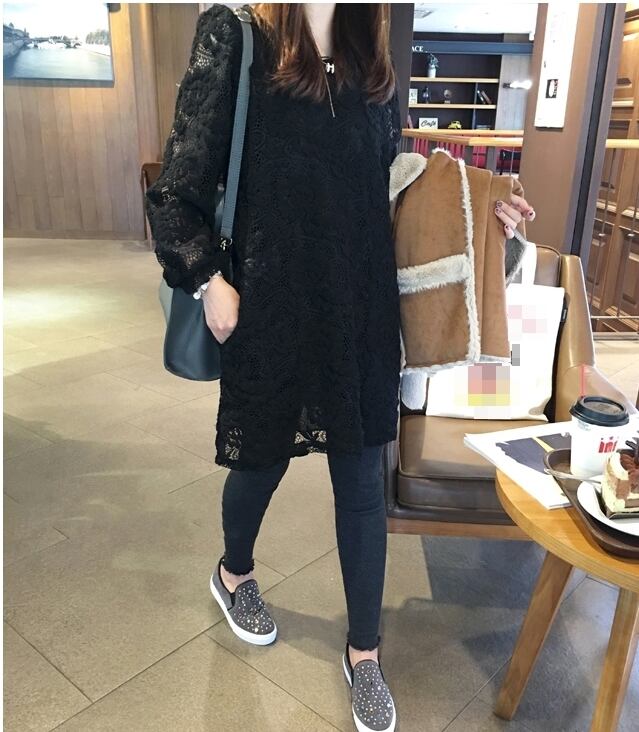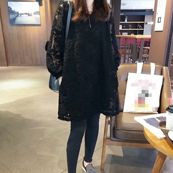 全2色 ワンピース 総レース 花柄 ショート丈 ひざ丈 ラウンドネック 大きいサイズ 体型カバー シースルー ゆったり 長袖 きれいめ カジュアル 上品 大人可愛い レディ デート 秋 春 冬