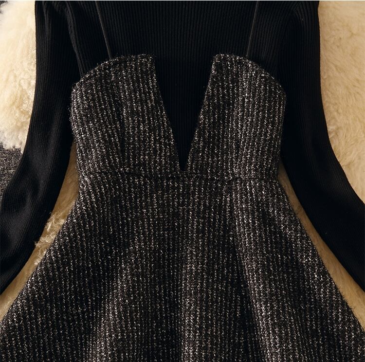 セットアップ ツーピース 2点セット セーター ワンピース ニット キャミワンピース Aライン フレア ハイネック カジュアル きれいめ 大人可愛い デート 女子会 秋 春 冬