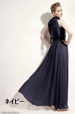 ホルターネックデザインがエレガントなロング丈ドレス。