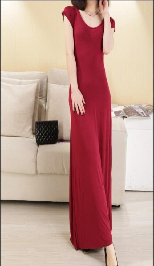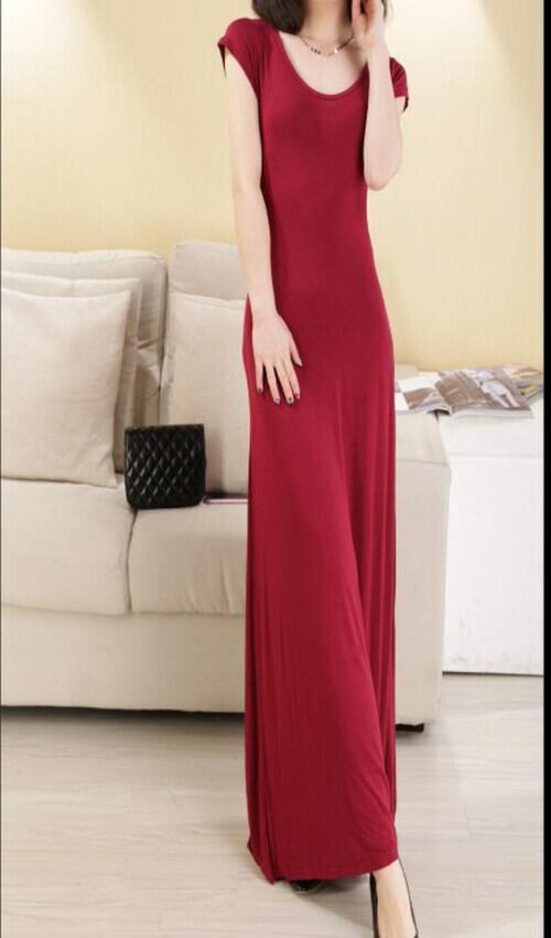 全3色 ワンピース ロング丈 モーダルドレス ラウンドネック ハイウェスト 半袖 ストライプ バックコンシャス お呼ばれ パーティ