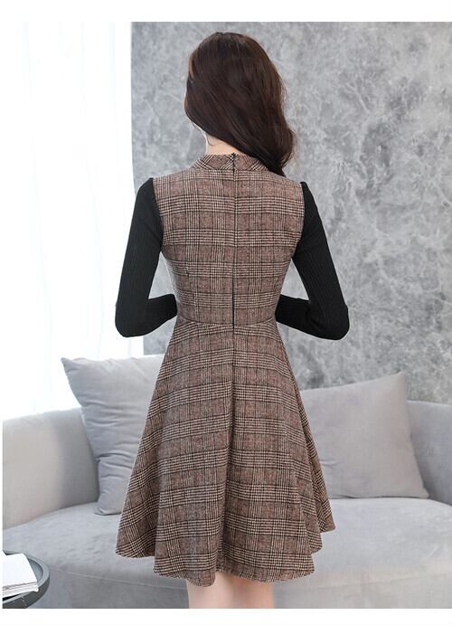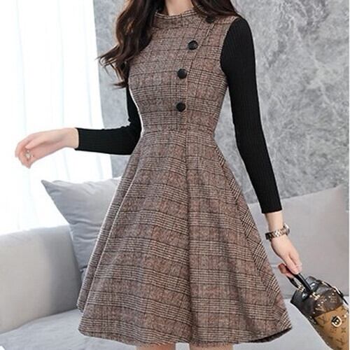 全2色 長袖 ワンピース ツーピース風 ミニ丈 ショート丈 ふんわり 裾広がり ボタン フレア 女子力アップ モテコーデ デート お出かけ 秋冬