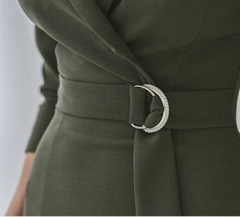 ワンピース ドレス ベルト トレンチ Vネック カシュクール タイト スリット 7分袖 無地 エレガント 上品 シック ボタン きれいめ お呼ばれ 秋 春