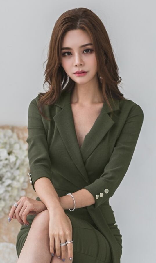 トレンドのタイトデザインがフェミニンなひざ丈ワンピース。
