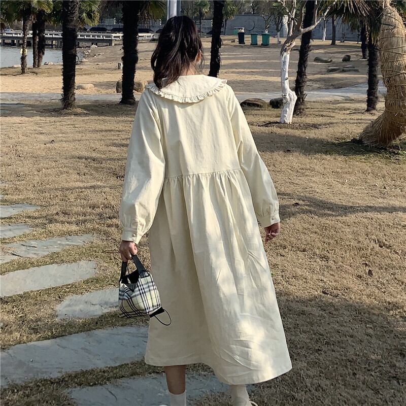 ワンピース ミモレ丈 長袖 ゆったり オーバーサイズ 体型カバー テント フリル フレア カジュアル デイリー シンプル 大人可愛い お出かけ カジュアル 秋