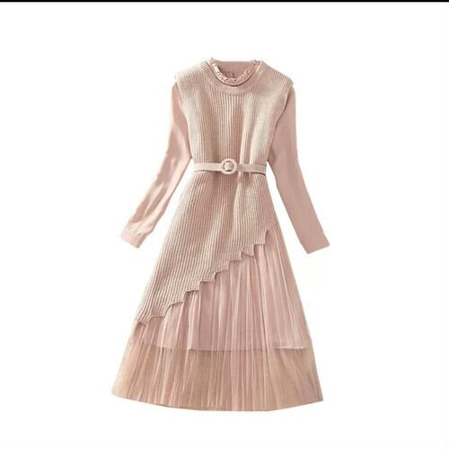全4色 ニット セットアップ ワンピース ツーピース ベルト 大人 可愛い キレイめ 上品 カジュアル お出かけ お買い物 デート 女子会 秋冬 春 通学 学生 通勤 韓国ファッション