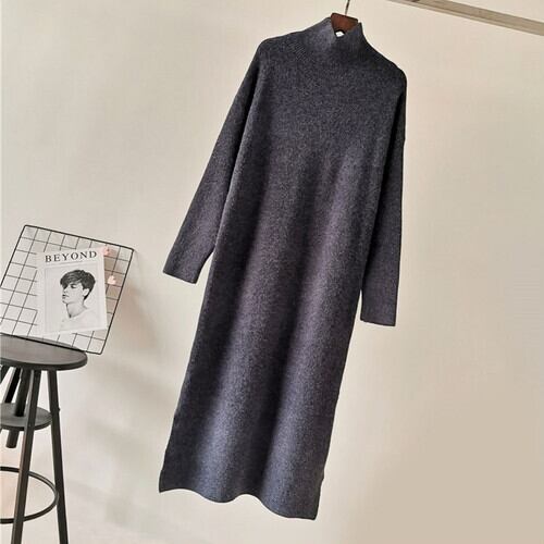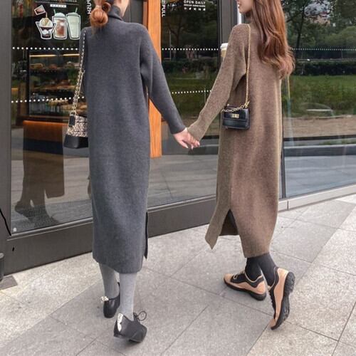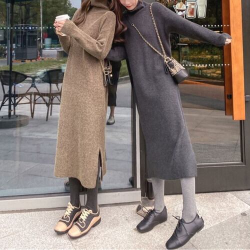 全4色 ニットワンピース ワンピース タートルネック ロング 無地 きれいめ カジュアル お出かけ デート デイリー 普段着 秋冬 グレー ブラウン カーキ グリーン