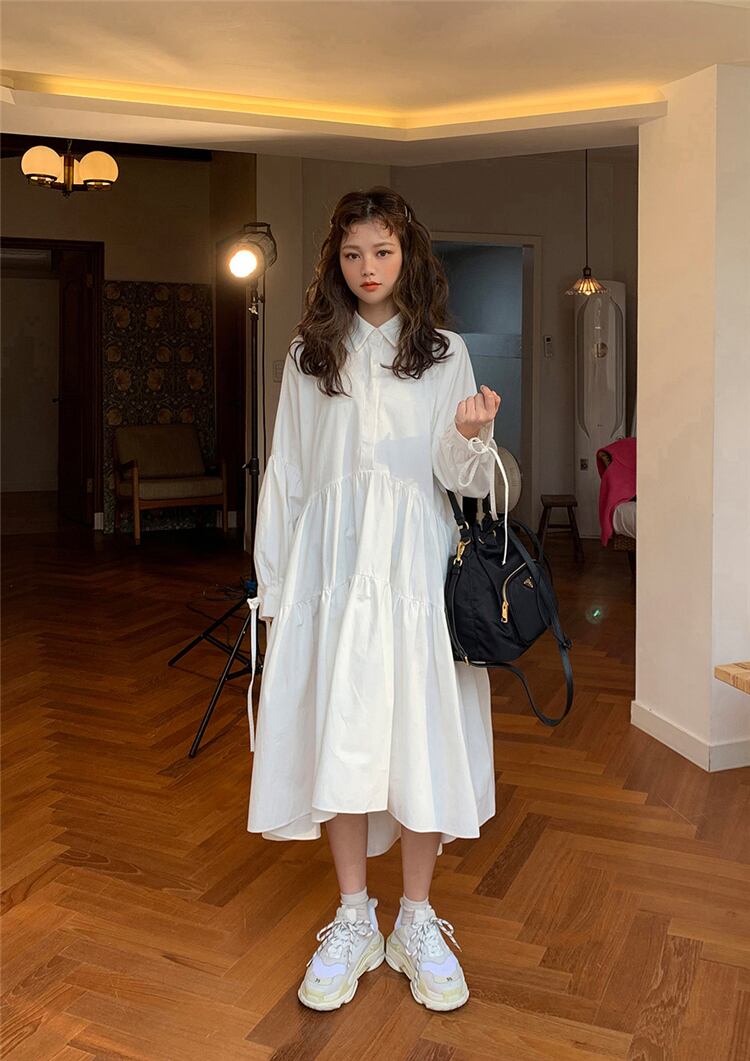 ワンピース シャツワンピース フロントボタン ウエストベルト ティアード フレア フリル アシンメトリー ガーリー 大人可愛い カジュアル きれいめ 長袖 秋 春 冬