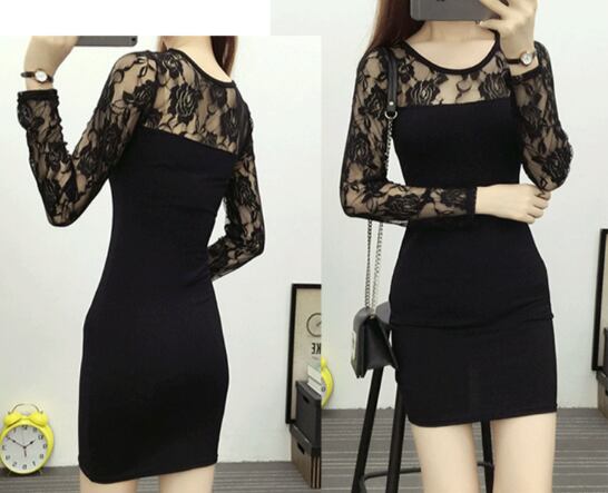 ワンピース レース 花柄 タイト ミニ丈 ドレス シースルー セクシー ラウンドネック 長袖 上品 ナイト ブラック きれいめ お呼ばれ キャバドレス 秋 夏 春