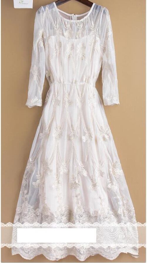 全体に施された刺繍が豪華で上品な印象のロングワンピース。