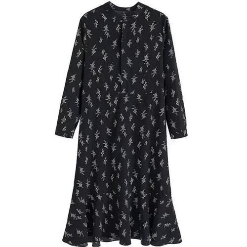 花柄 シフォン ロング丈 ワンピース 大きいサイズ ゆったり 大人 カジュアル 可愛い キレイめ お出かけ お買い物 デート 女子会 秋冬 春 通学 学生 通勤 韓国ファッション