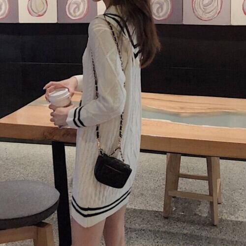 セーラーカラーがかわいいケーブルニットのミニワンピースです。