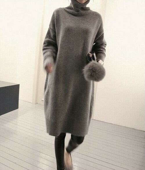 全2色 ニットドレス ニットワンピース ブラック グレー タートルネック 長袖 ドロップショルダー 大人カジュアル 大きいサイズ 秋 冬 韓国 オルチャン ミニ丈
