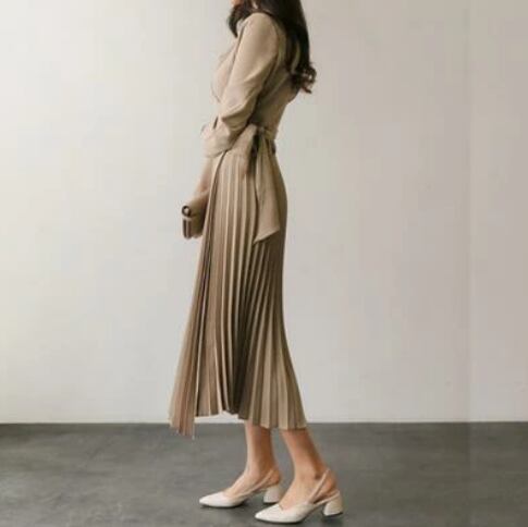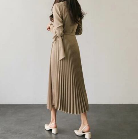 全4色 ワンピース おしゃれ 春 きれいめ 袖あり ロング丈 ミモレ丈 エレガント 春夏 春秋 長袖 レディース ワンピ ドレス シフォン プリーツスカート カシュクール オフィス お呼ばれ 大きいサイズ ブラック 黒 ベージュ ブルー 青 ワイン 20代 30代 40代 50代