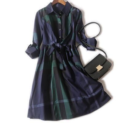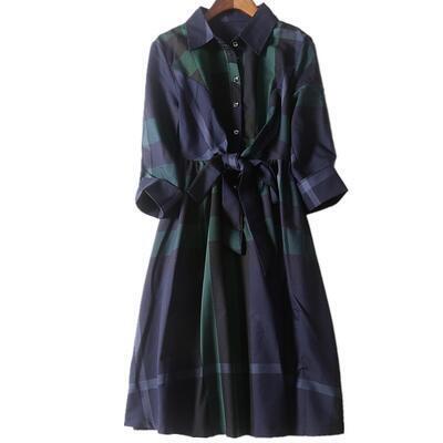 ワンピース 春 きれいめ 七分袖 カジュアル おしゃれ レディース 春夏 春秋 トラッド チェック 可愛い Aライン ドレス ひざ丈 ミモレ丈 ウエストリボン オフィスカジュアル フェミニン 着痩せ 大きいサイズ グリーン 緑 20代 30代 40代 50代