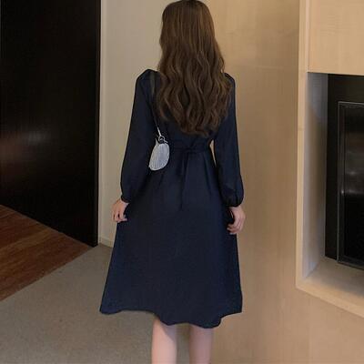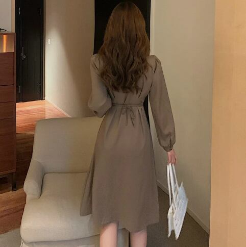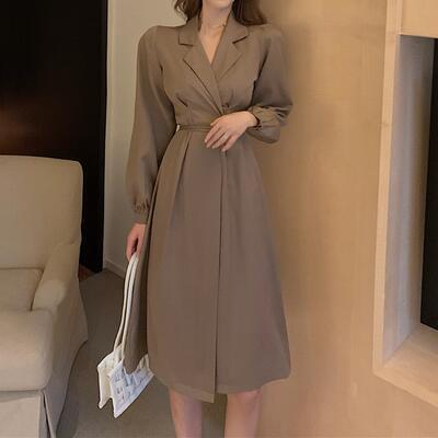 全2色 ワンピース 春 きれいめ 袖あり エレガント おしゃれ レディース ミモレ丈 ワンピ ドレス テーラードカラー Vネック 長袖 可愛い ウエストリボン 春夏 春秋 Aライン 女子会 ヴィンテージ シンプル カーキ ネイビー 20代 30代 40代 50代